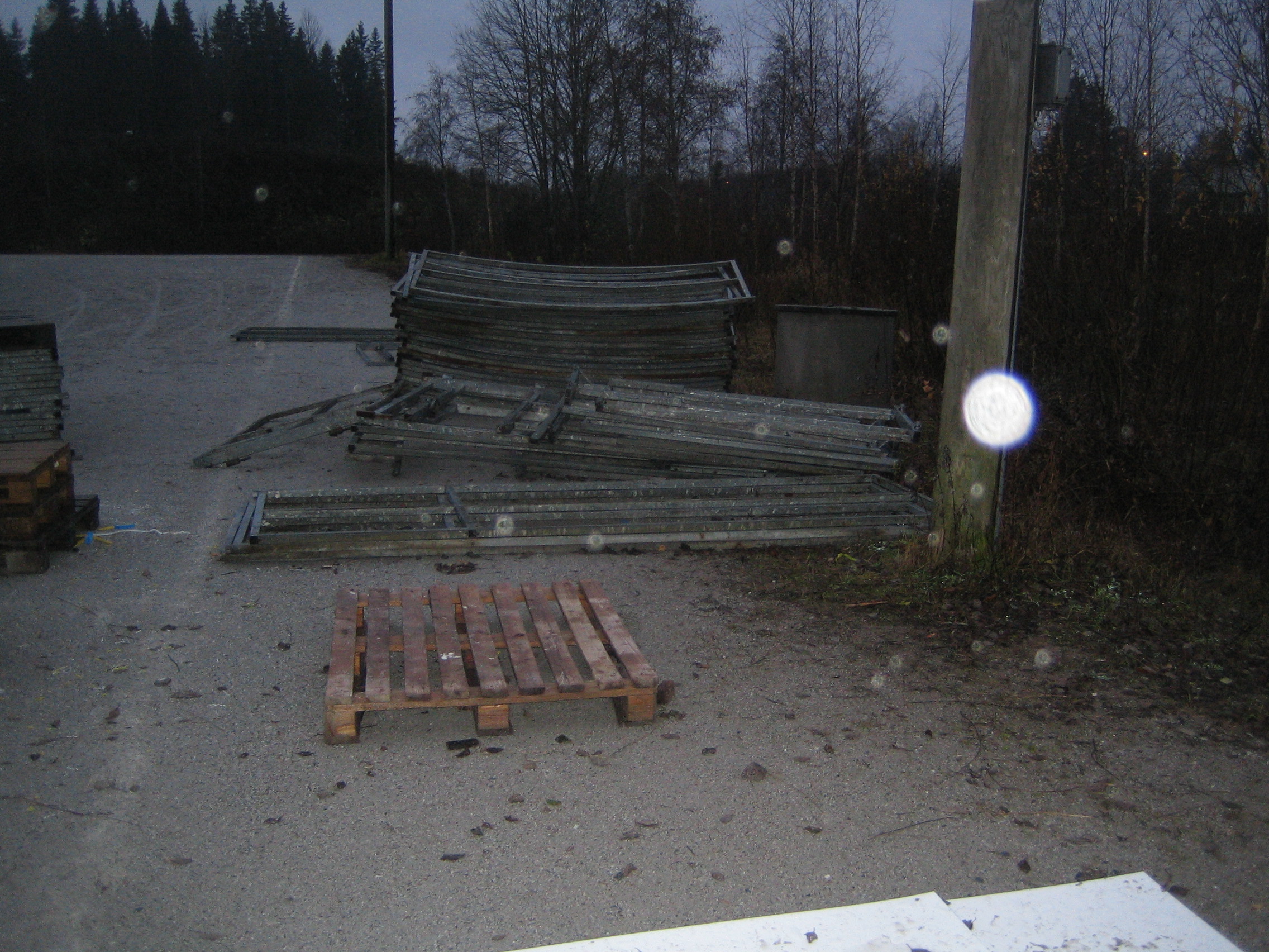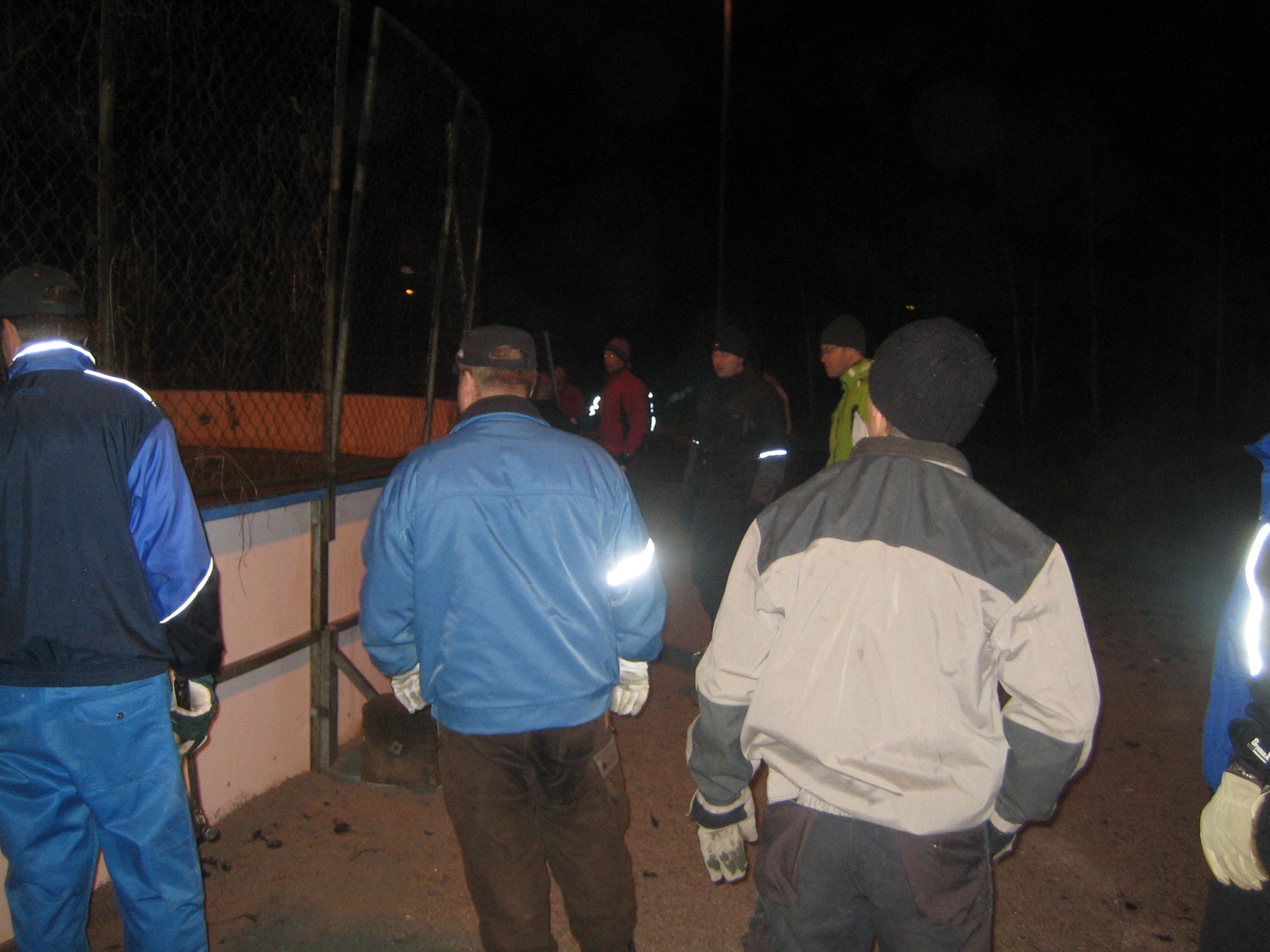 Pimeys yllätti klo 19:n aikoihin ja seuraaviin talkoisiin maanantaiksi saamme pukukopin avaimen kaupungilta ja sähköt peliin. Muuten tutkimme laitojen kunnon ja sorkkarautojen avulla purimme hieman alle puolet laidoista, muutamia kuvia alla.