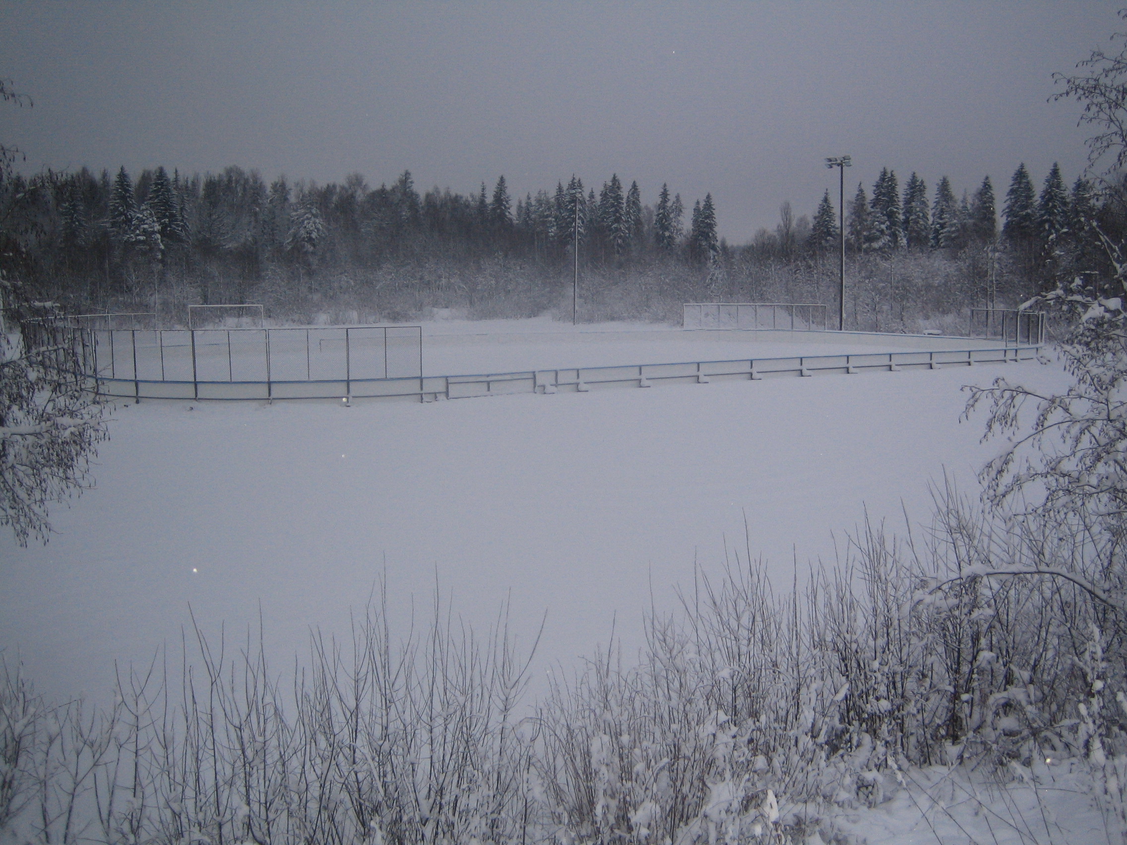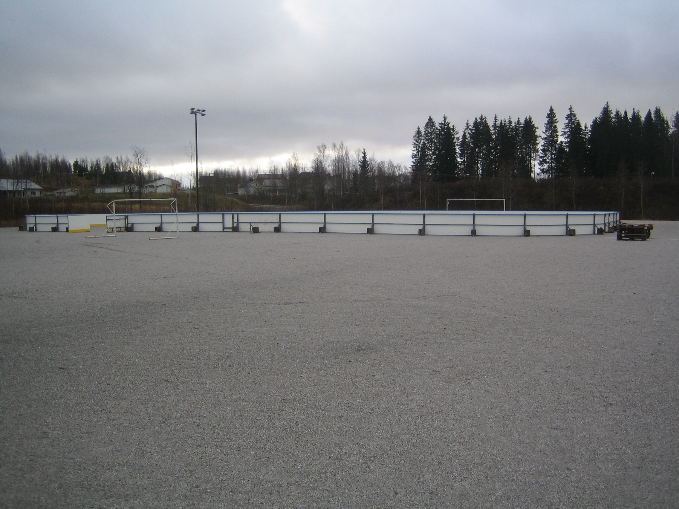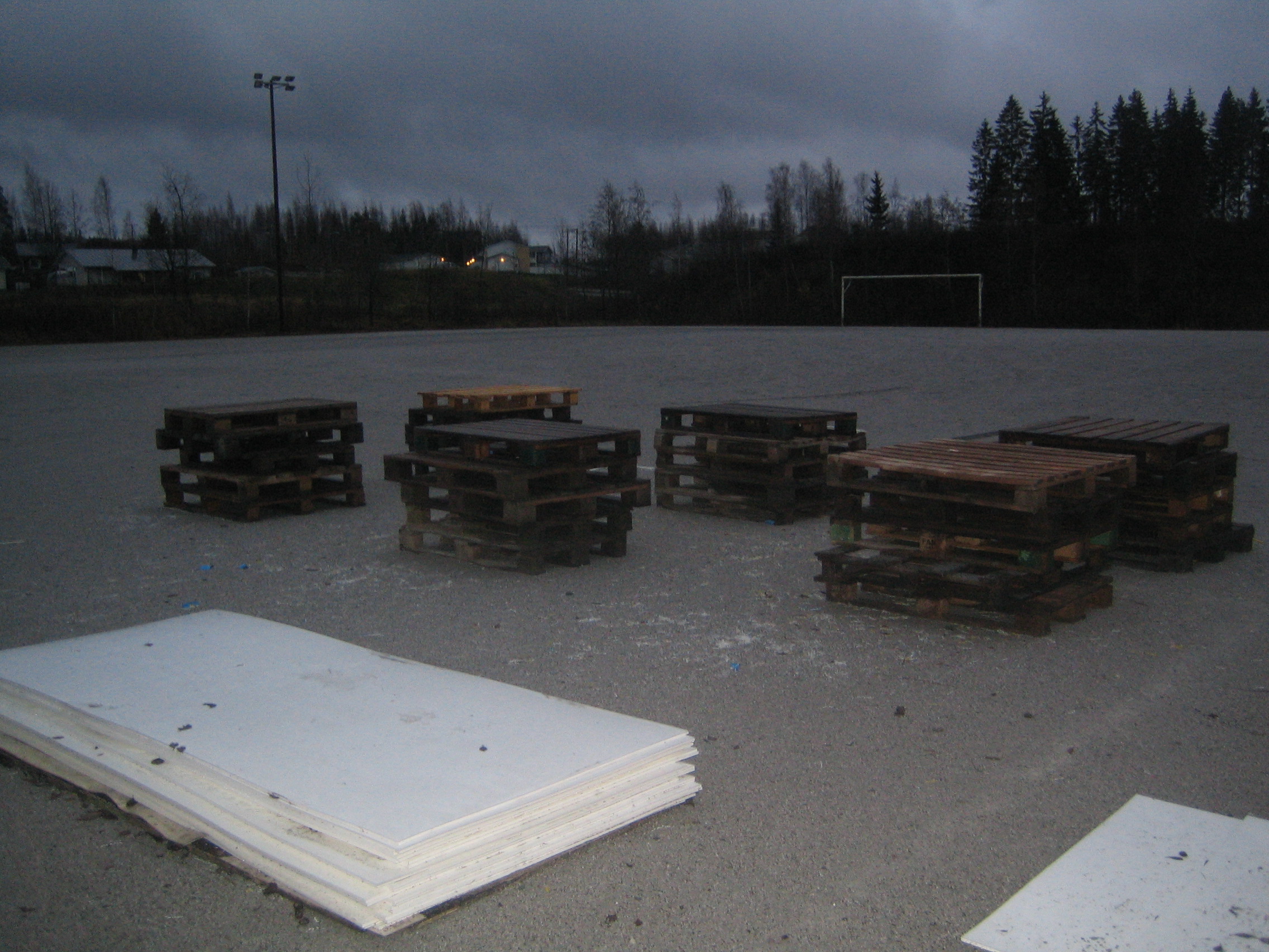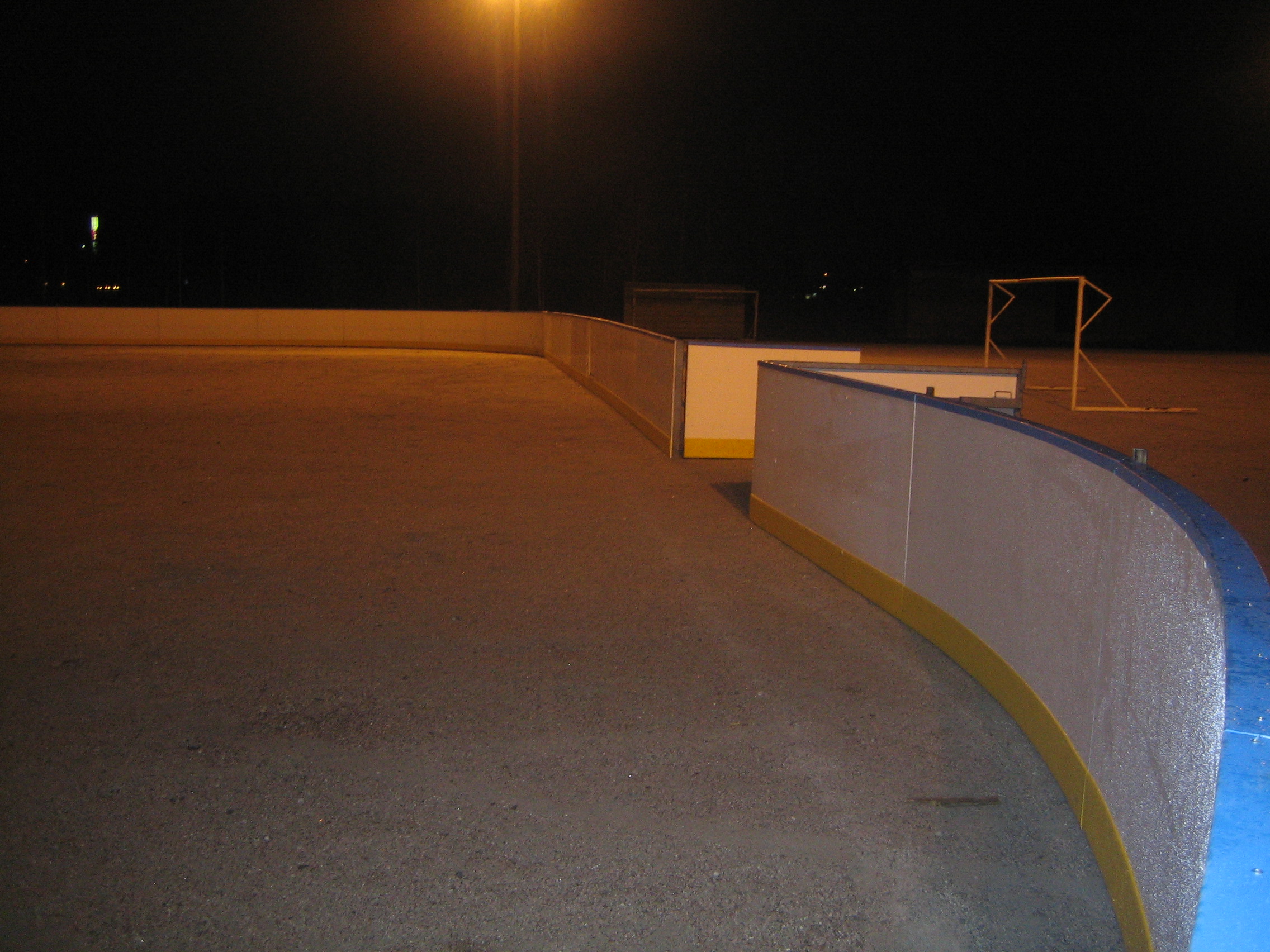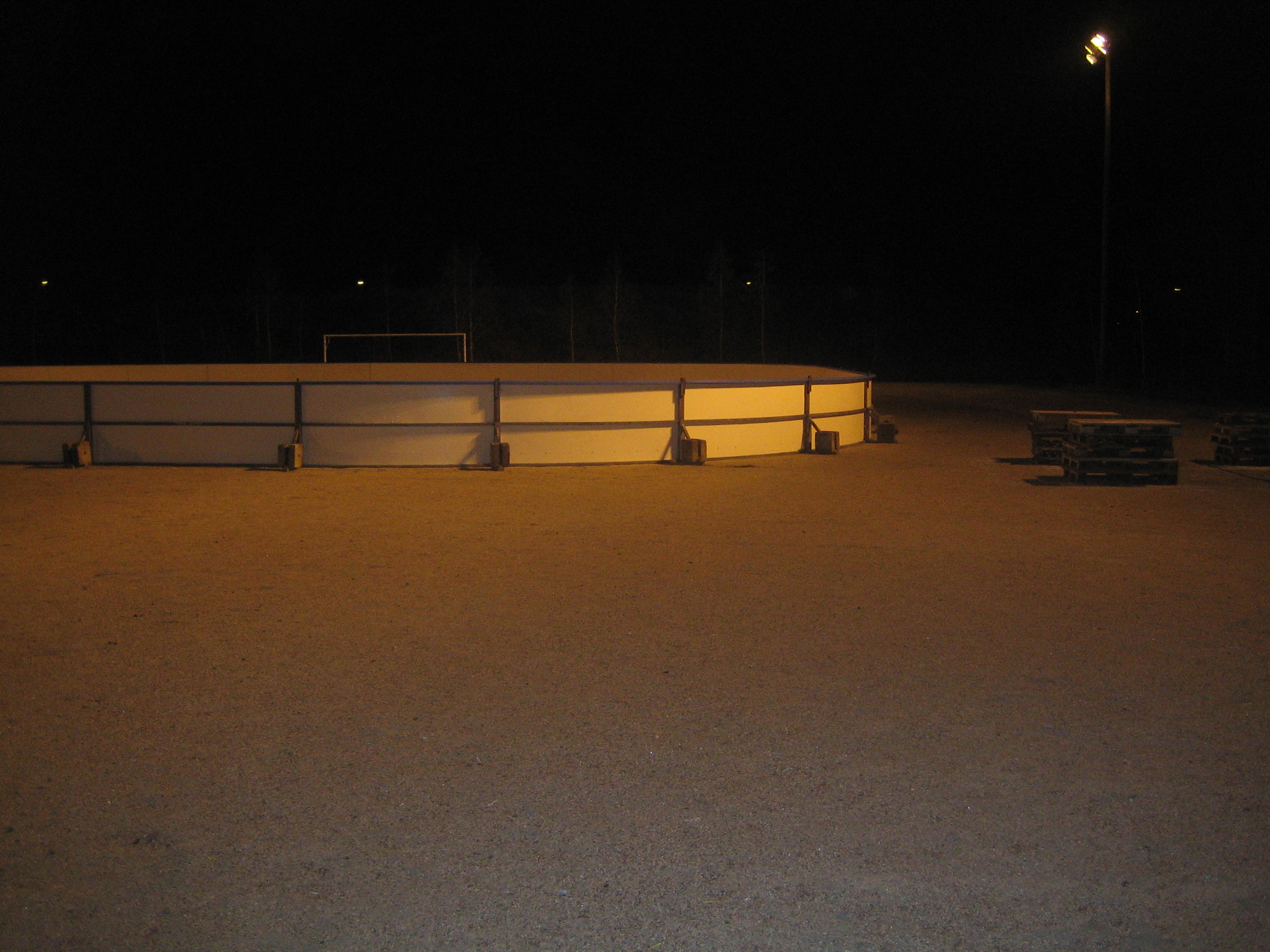 iltavalaistuksessa pystytetty kaukalo (ilman jäätä ja lunta tosin...)
