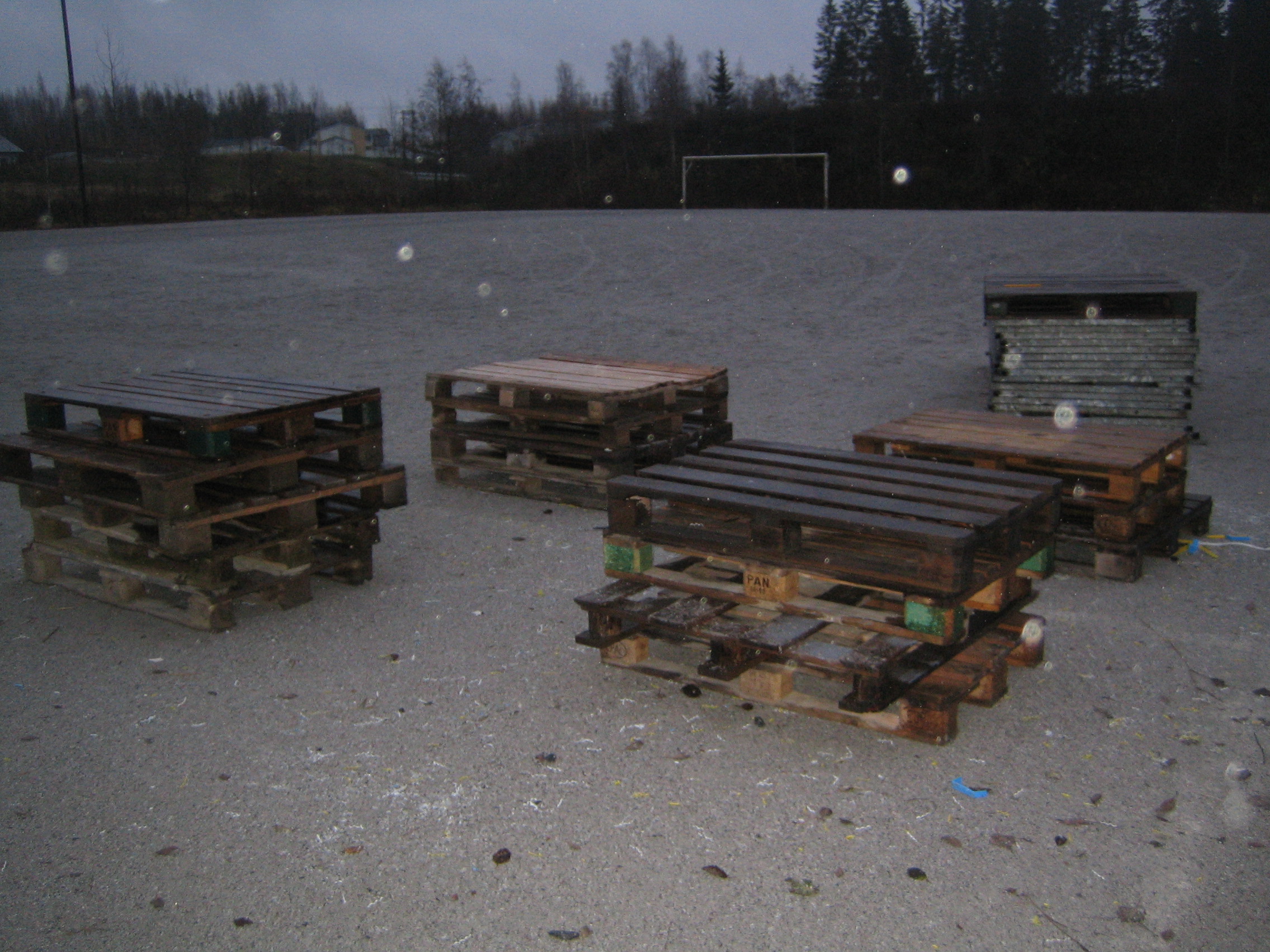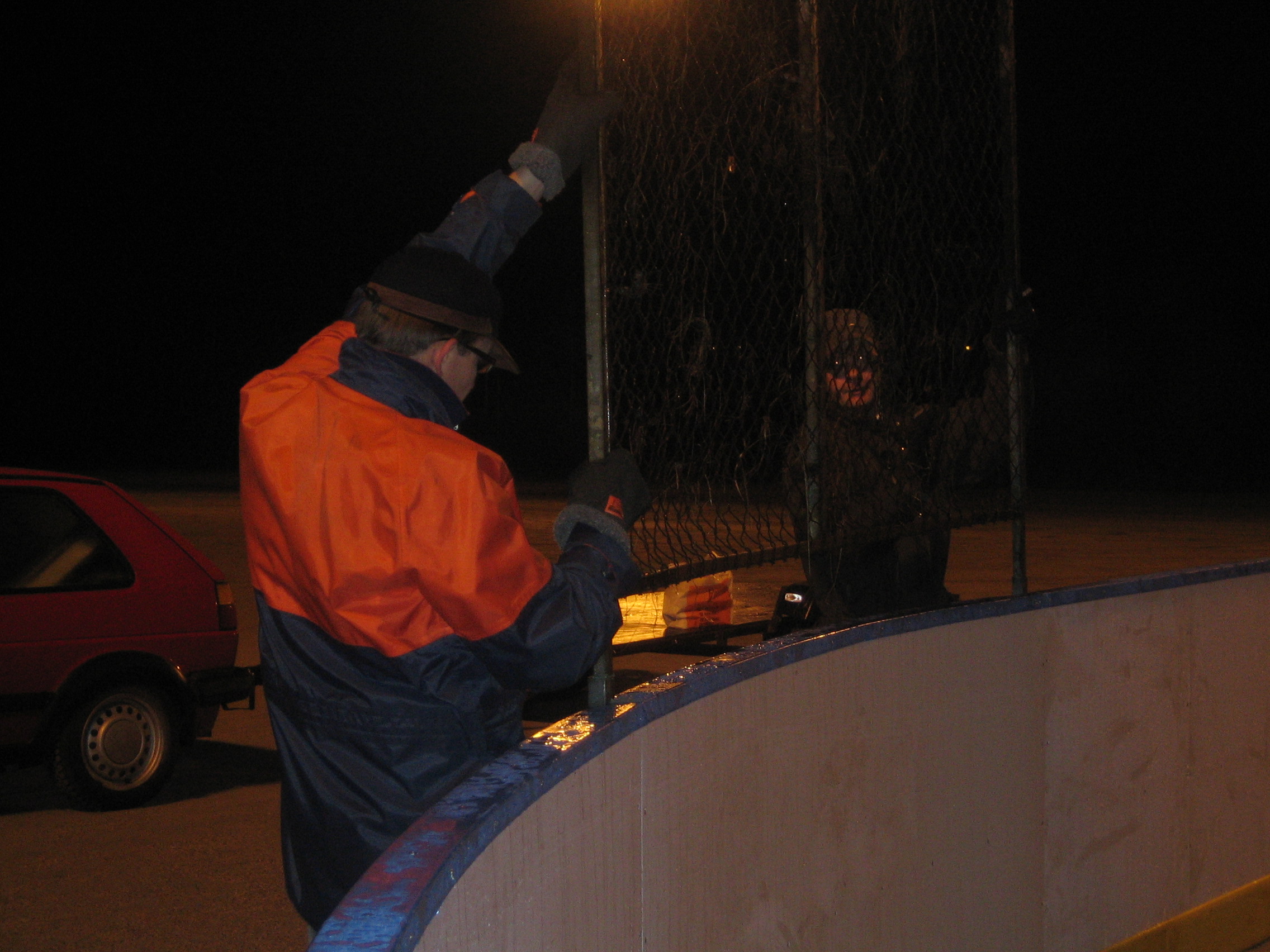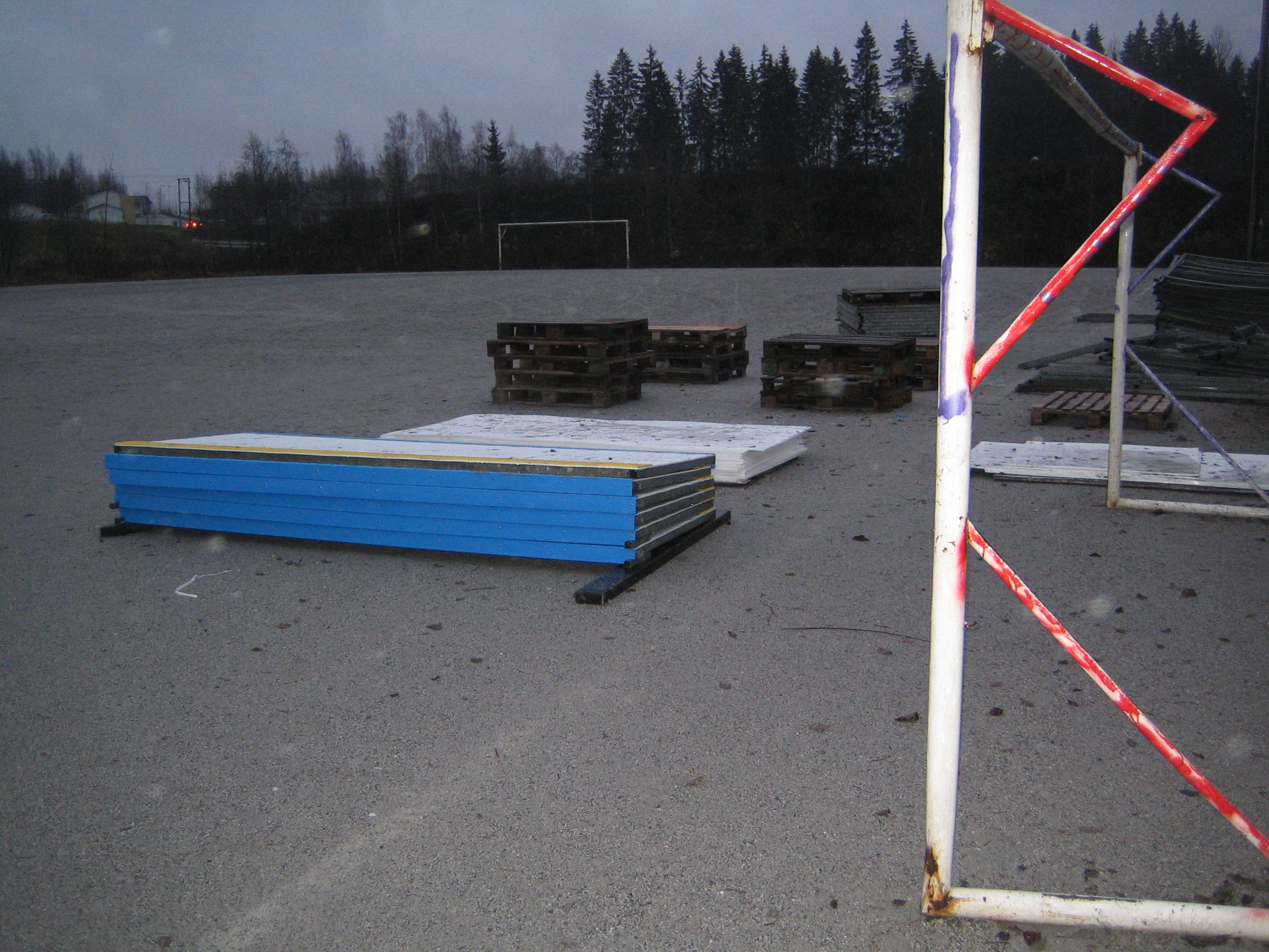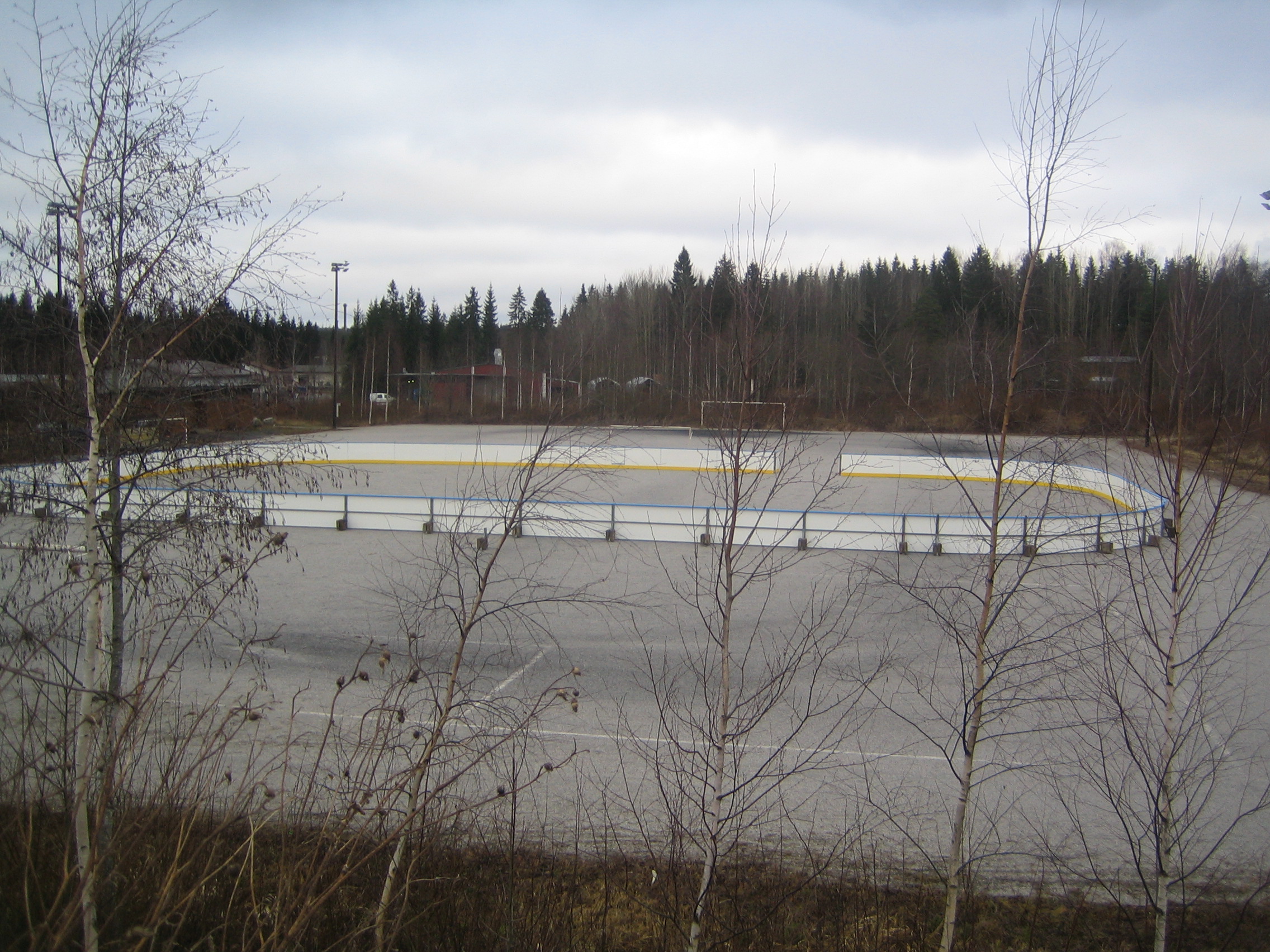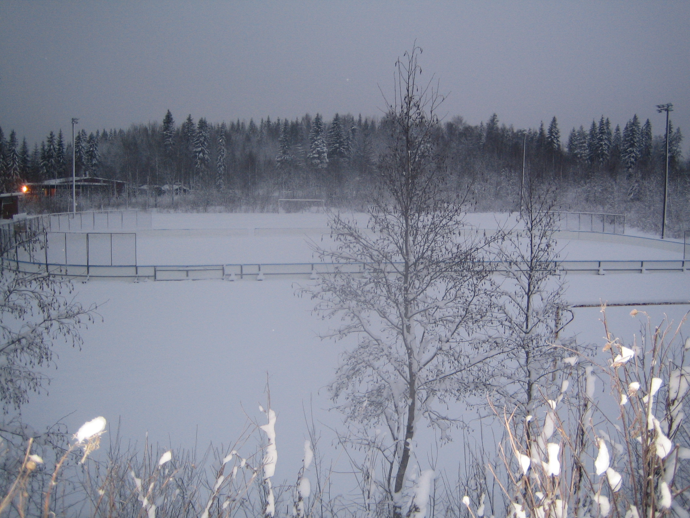 iltavalaistuksessa pystytetty kaukalo (ilman jäätä ja lunta tosin...)