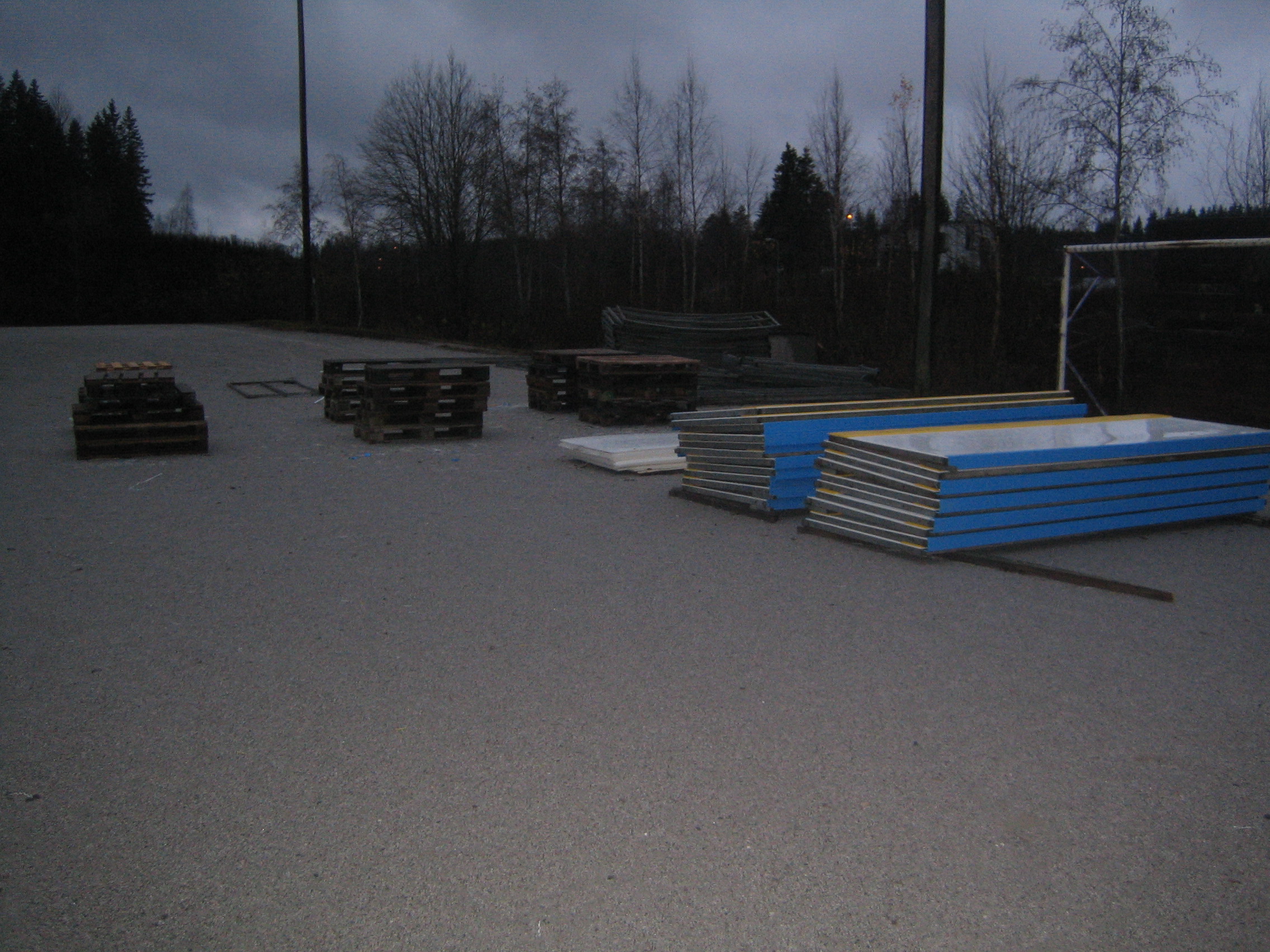 Varsinainen laitojen rakentaminen alkaa! Laitamme koko kentän valonheittimet päälle. Ja nyt tarvitsemme Karhuvuori-Hiessilta-Hyrymäki-lähialueen ammattimiehiä poraamaan, leikkaamaan oikeita paloja, oikomaan rakenteita ja rakentamaan laitoja. Kaikki muutkin apulaiset tarpeellisia, laitojen kuljettamista, pystyttämistä jne.