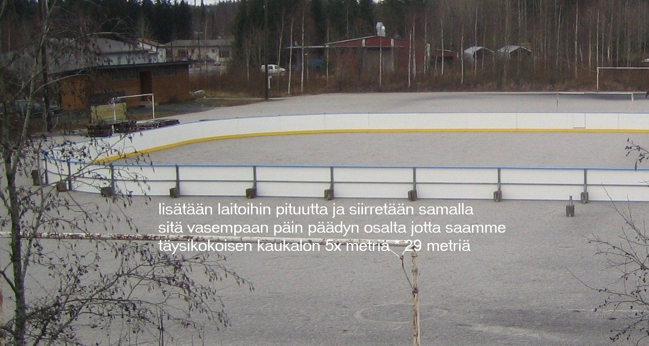 Liikuntatoimelle kertoiltu kaikki kohdat joita tuli ilmi projektin aikana. Kaukalon koko on 53 * 29 metriä. Kehikko (vanha kaukalo) tuli syksyn alussa siis Ravattilasta.